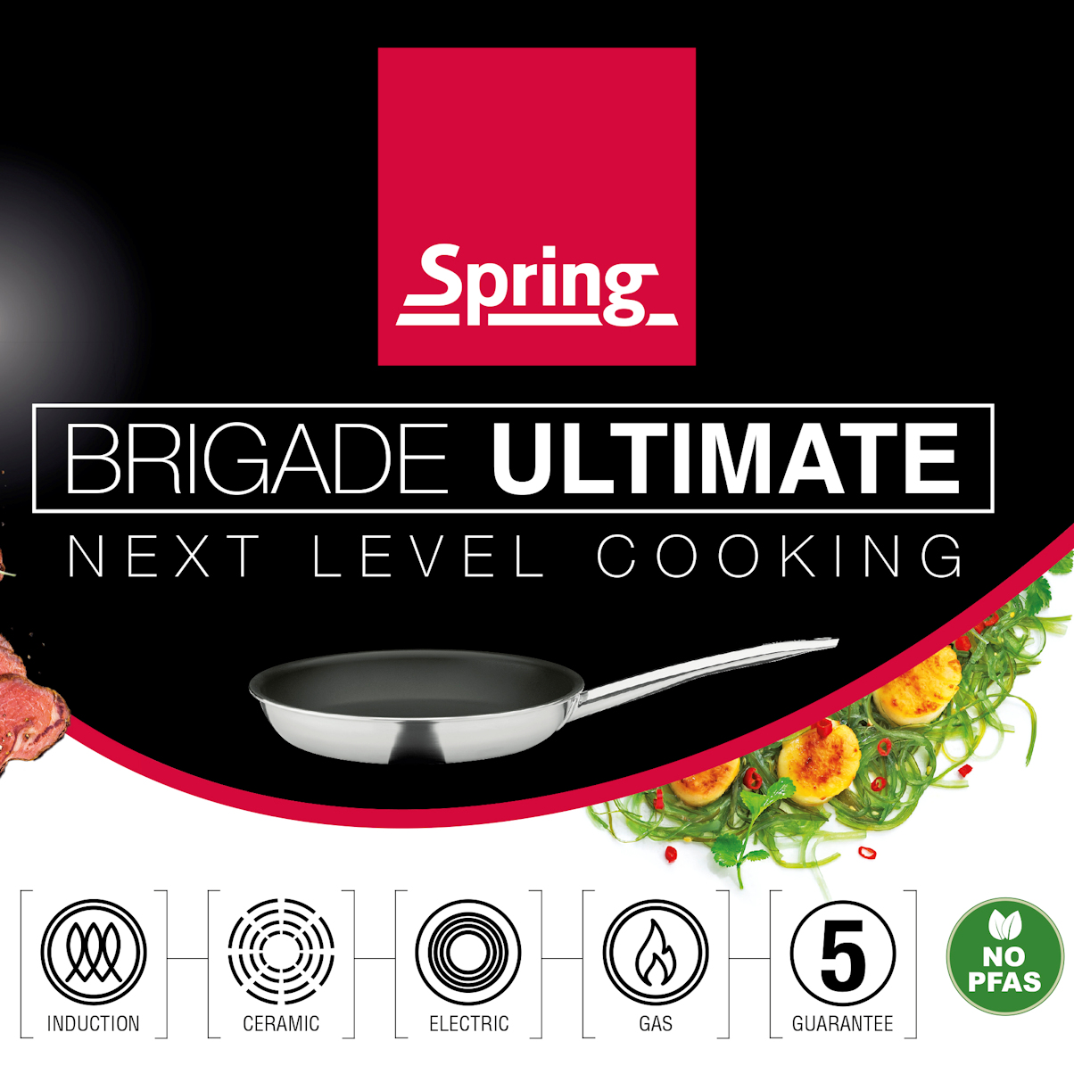 Spring Brigade Ultimate is de allernieuwste ontwikkeling op het gebied van koekenpannen, namelijk een RVS pan die behandeld is met een plasmastraal (laser), waar tijdens de behandeling andere staalsoorten aan toegevoegd worden, die op dat moment samensmelten met het edelstalen oppervlak, waardoor dit nieuwe oppervlak ontstaat.