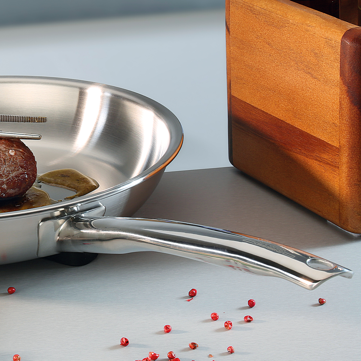 Spring Brigade Premium GLi is afkomstig uit de professionele lijn Brigade van dit van origine Zwitserse merk. De licht gematteerde panbody is van super warmte geleidend 5-lagen materiaal, dat naast excellente kook eigenschappen ook heel fraai oogt. De stelen zijn van 18/10 edelstaal.